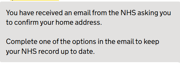 The emails include an option for patients to change their home address directly with the NHS at: https://change-your-address.account.nhs.uk. This is a new service that’s being tested with patients who receive these emails.